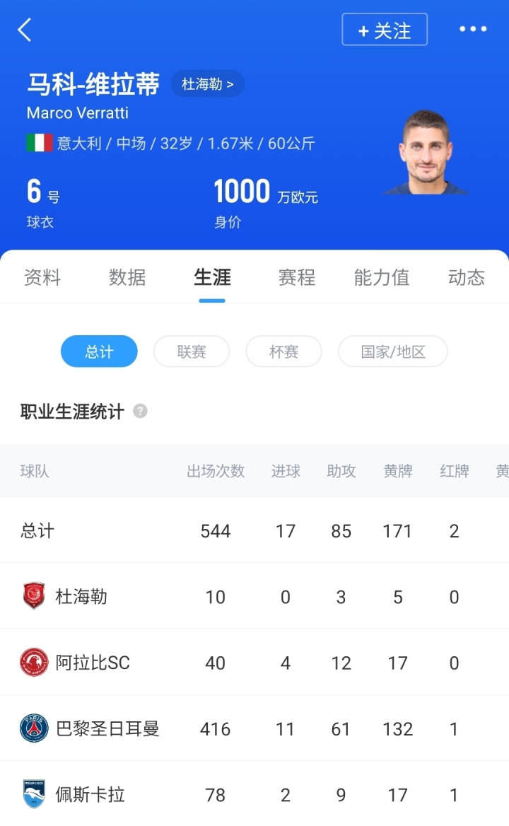 在巴黎效力11年后,维拉蒂又以4500万欧转会费加盟卡塔尔球队阿拉比SC。