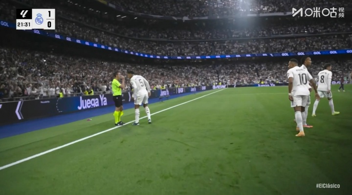 10月26日讯 西甲第10轮,皇马vs巴萨,赛事 第22分钟,贝林厄姆直塞,苏超在线直播高清视频无插件姆巴佩单刀赴会破门,得分 后贝林厄姆找到助理裁判说了些什么,助理裁判则回应了“🤏”手势。
