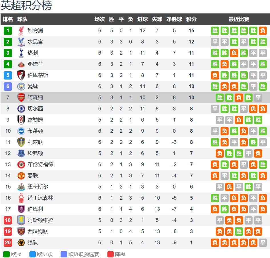 英超第6轮的首日赛事 中英超联赛现场直播,出现了多场冷门,利物浦迎来赛季首败,切尔西和曼联均负于对手,热刺勉强追平榜尾球...