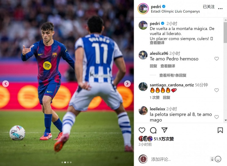 佩德里当选本场赛事 最佳球员足球投注足球投注app推荐,赛后他在社交媒体上晒出赛事 照片,苏超直播配文:“重回蒙特惠奇运动活动 场 ,重返西甲榜首。一如既往的快乐,巴萨球迷们。”