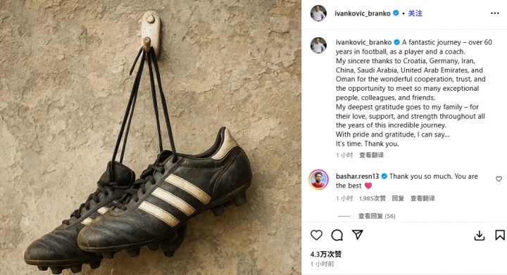 71岁前国足主帅伊万科维奇在社媒发文,正式宣布退休,他表示自己以球员和指导教练员身份驰骋足坛逾六十载,是时候该别足坛了。
